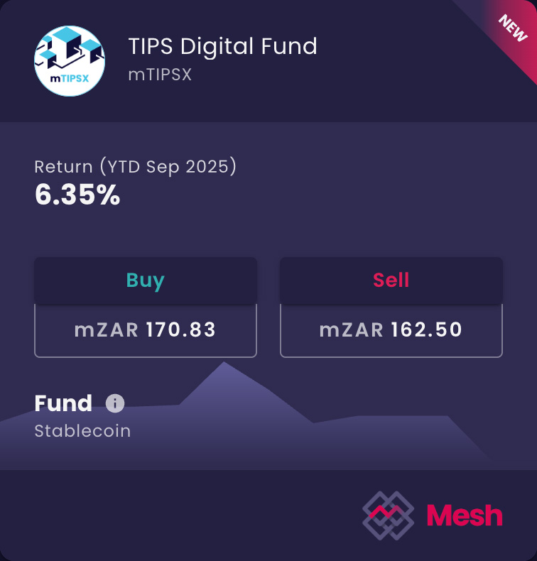 This web page is for informational purposes only and does not constitute investment advice, a solicitation, or an offer to invest in any foreign or local fund. Mesh-issued tokens provide price exposure to selected reference assets and do not represent ownership or participatory interests in any underlying fund or collective investment scheme. Investments involve risk, including possible loss of capital. Token values and yields may fluctuate; past performance is not indicative of future results. South African investors are exposed to USD/ZAR currency risk. Same-day access is subject to business-day cut-offs.
